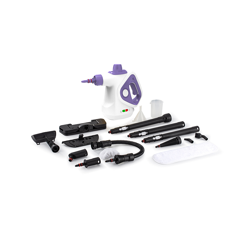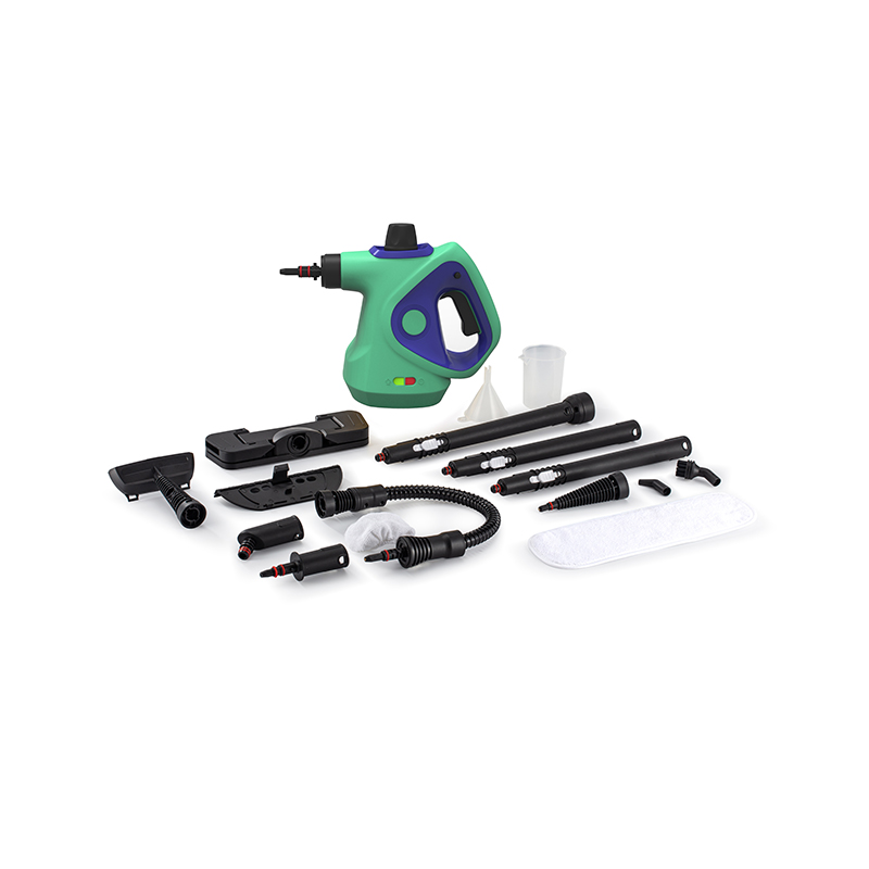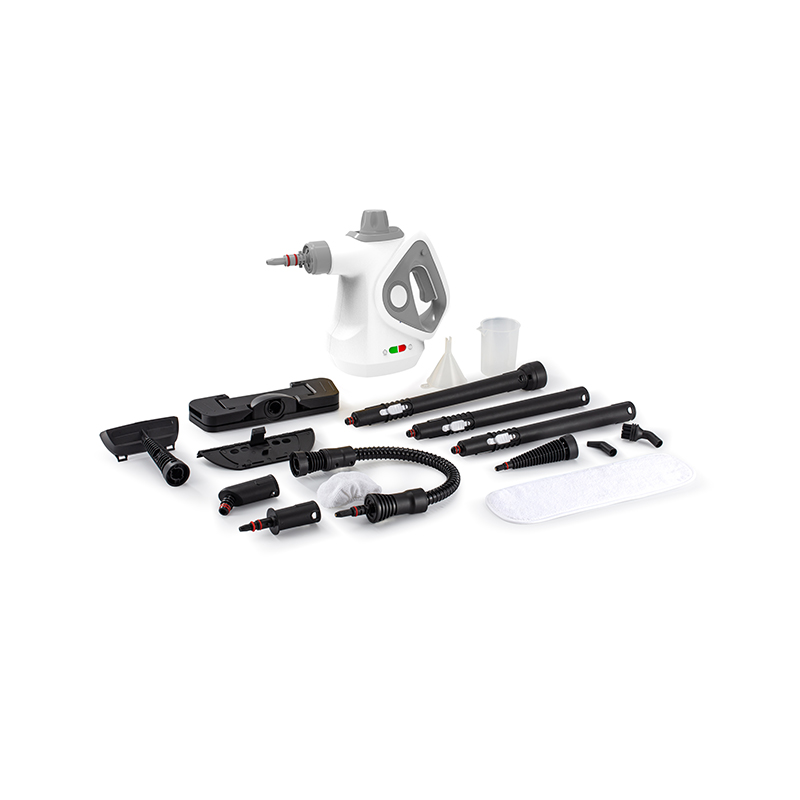 READ MORE TM-377 900-1050W flerbruks håndholdt damprenser med mopp er en alt-i-ett-rengjøringsløsning designet for å takle et bredt spekter av husholdningsrengjøringsoppgaver. Denne allsidige damperen kombinerer kraftig damprengjøring med bekvemmeligheten til en mopp, noe som gjør den perfekt for rengjøring av gulv, vinduer, kjøkkenoverflater og mer. TM-377 tilbyr eksepsjonell ytelse for å desinfisere og rengjøre uten behov for sterke kjemikalier. Den varmes opp på bare 1-3 minutter og gir opptil 10 minutter med kontinuerlig damp, ideell for dyp rengjøring og fjerning av tøffe flekker. Det medfølgende tilbehørssettet med 16 deler, som inneholder viktige verktøy som lange og bøyde spraydyser, rund børste, forlengelsesslange og et håndkle, kompletteres med 7 mopptilbehør: 3 mopprør, 2 moppoverføringskoblinger, et håndkle med lange ermer og en moppbunn, noe som gjør den spesielt effektiv for gulvrengjøring.